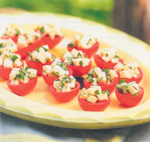 Cherry Tomatoes Stuffed With Mozzarella & Basil