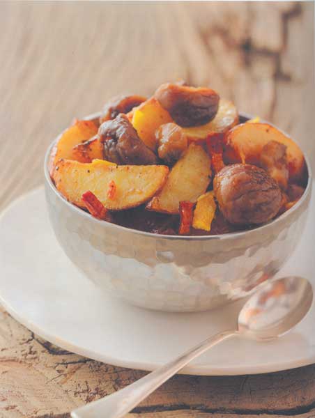 Chestnut Confit With Roasted Potatoes, Bacon and Kumquats