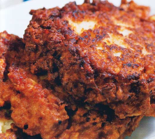 In a 12-inch sauté pan over medium-high heat, heat 1/4 inch of oil. When a drop of water sizzles and evaporates immediately, the pan is hot.