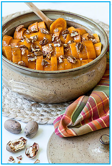 8. Add the pecans, if you like, sprinkling evenly over the sweet potatoes, and bake 15 minutes longer or until the potatoes are fork-tender.