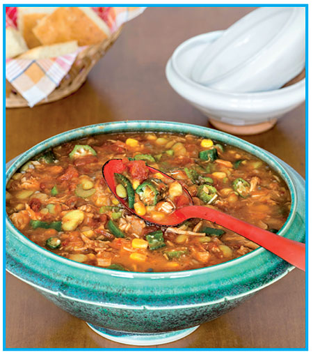 7. To serve, ladle the steaming stew into heated pottery soup bowls and accompany with fresh-baked cornbread.