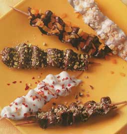 With pastry brushes, coat bacon on both sides with melted coatings. Top each strip as desired. Place on waxed paper-lined baking sheets.