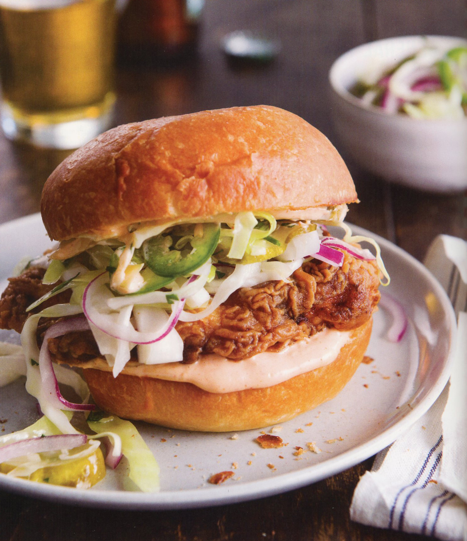 Son of A Gun's Fried Chicken Sandwich With Pickle Coleslaw and Red Rooster Aioli