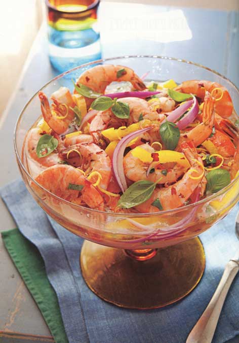 Drain and rinse with cold water. Peel shrimp and, if desired, devein. Layer shrimp, onion and bell pepper in an airtight container.