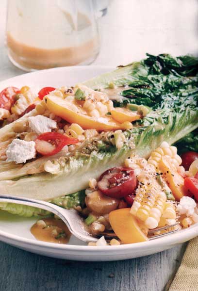 Grilled Romaine Salad With Tomato and Corn Tumble