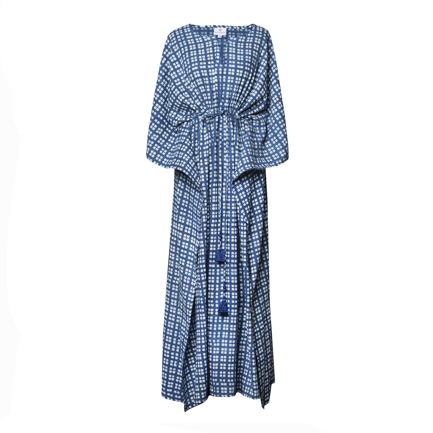 Pax Philomena Charles Indigo Maxi Kaftan Dress – This hand-block printed maxi dress, with an adjustable drawstring waist, is made from 100-percent cotton. $185 Paxphilomena.com