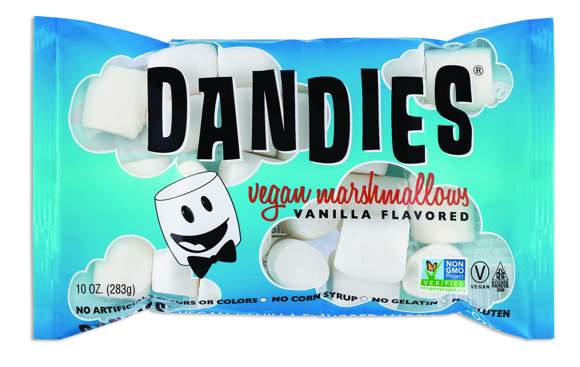 Dandies Vegan Marshmallows – Made with high-quality, clean ingredients like real vanilla and vegan cane sugar, Dandies are free of common allergens and contain no artificial flavors or colors, corn syrup, gelatin or gluten. $5 Dandies.com
