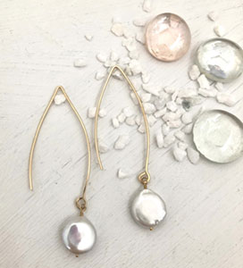 Isabelle Grace Jewelry Essential Coin Pearl Earrings – These beauties, made with a gorgeous pair of freshwater coin pearls, are available in gold, silver or rose-gold finishes. $56 IsabelleGraceJewelry.com