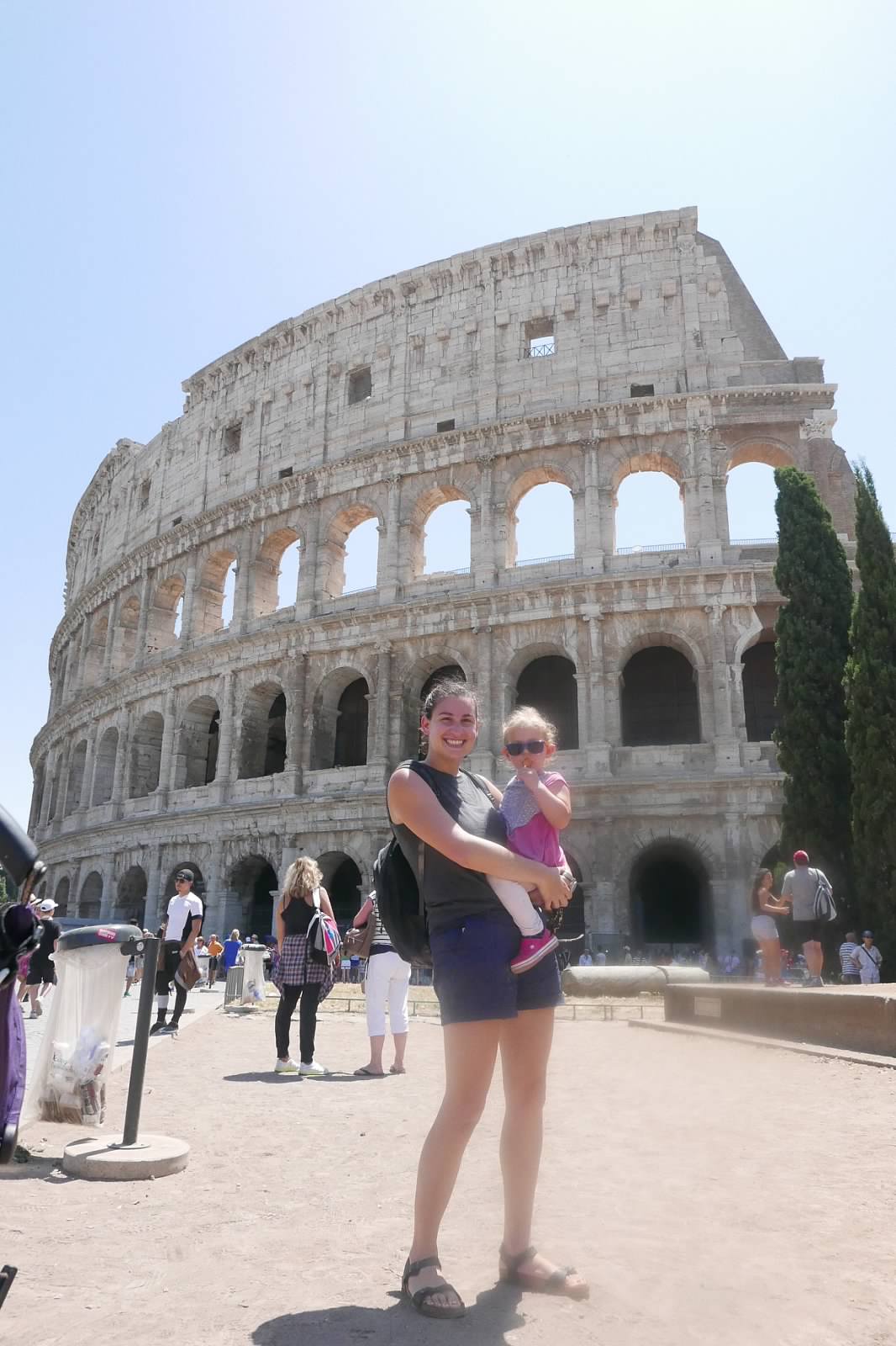 On a day trip, we took a 30-minute train ride to Florence. At the Uffizi, we stood in awe of Botticelli's "The Birth of Venus" and snapped pictures of Michelangelo's "Doni Todo." Later, we visited Michelangelo's statue of David,marveling at the detail of the statue's muscles and veins; and ended the day with a carousal ride – Sydney's first – in the center of town. When we were dizzy from repeated cycles on the merry-go-round, we left for the train station and headed to Rome.