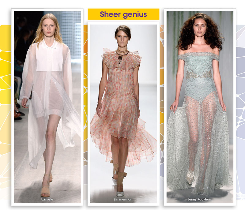 See-through fabrics were all over the runways for both formal and casual occasions. Cocktail dresses featuring sheer skirting and blouses with transparent necklines were some of the most common pieces.