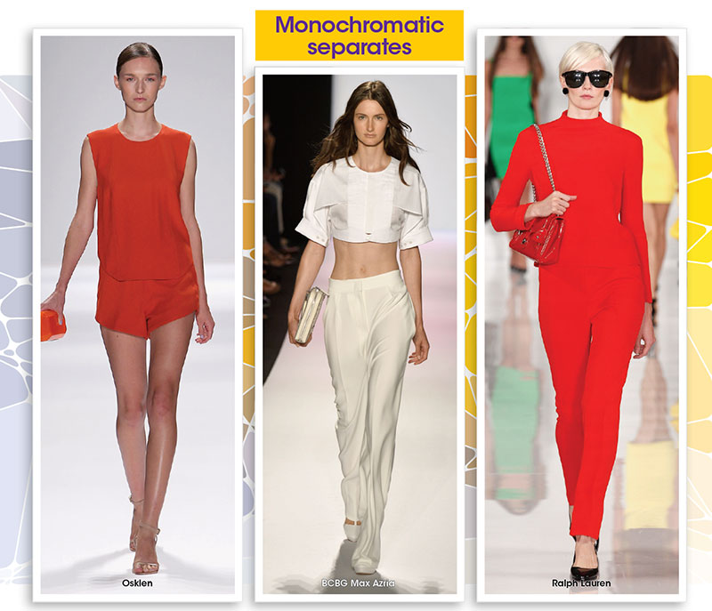 Matching tops and bottoms are big for spring and summer. You can try out your own version, going bold with bright colors or simple with all white, which was an especially popular designers’ choice.