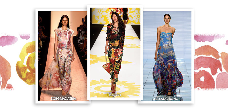 Head-to-toe floral prints were all the rage on the catwalk. Models bloomed in carnation-covered jumpsuits and maxi-dresses embroidered with vibrant butterflies.
