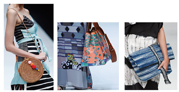 Do you carry a tote bag and a handbag at the same time? Consider yourself a fashionista! Many designers sent out runway models with two bags at once. Standout totes were extra-large and purses were often made of wicker, straw or rattan. In other bag news: The fanny pack (even a small leather one dangling from a belt) returned!
