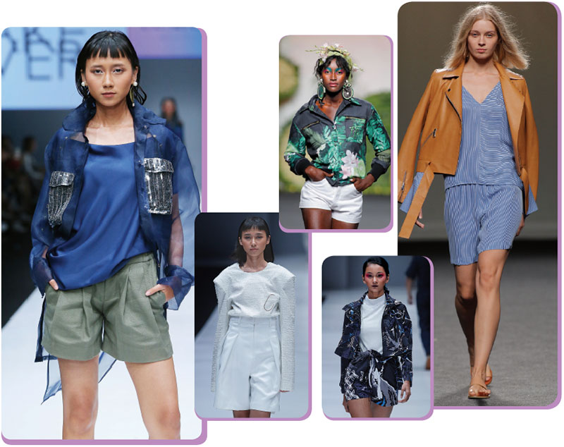 Bermuda shorts and bike shorts, the ultimate in comfy staples, are back. There are, of course, twists: A preppy version may be incorporated in a suit and a sporty style may be rendered in silk and lace. Hot and humid out? Consider wearing a tailored shorts suit that ends at the knee to your Research Triangle Park office.