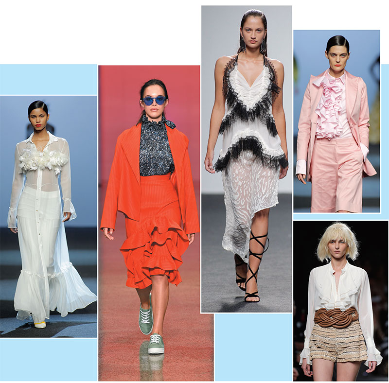 Whimsical or luxurious, feathers and other frilly things are pumping up the volume. The more-is-more aesthetic adorns the front of a blouse, the neckline of a pantsuit, the hem of a dress or just about any part of any ensemble.
