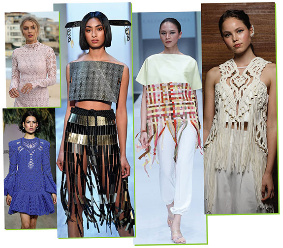 The feel is handmade, homespun, artisanal. The biggest trend is crochet, which much like knitting is a process of creating a fabric by interlocking strands of yarn. But this isn't Garner Grandma's handicraft. Designers are thinking outside the box and, for example, showing lots of skin-baring styles. Luxury details include glam fringe, drawstrings borrowed from athleisure and intricately patterned lace.