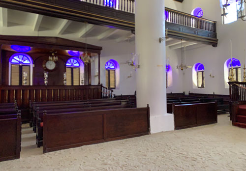Even more stirring than its stained-glass windows, copper chandeliers, mahogany furniture, and silver and brass ornaments are its unique sand floors. Next door, we were enlightened by the Jewish Cultural Historical Museum, which tells the story of the community from the arrival of the first Jew in 1634.