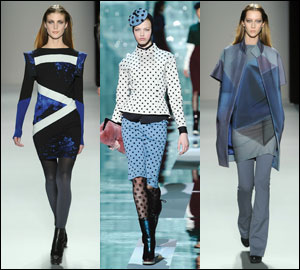 Among the extremes, the trends pitted restrained ensembles against '60s groovy-wear. It was Library Lady vs. Mod Squad.