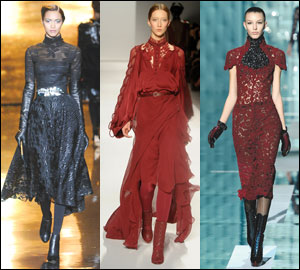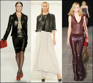Heightening the drama are other mod twists clamoring to be divalicous, such as brightly colored or wide-leg pants; the pairing of black and white; a multitude of layering options; tomboy touches; soft leather; sheer fabric and asymmetrical elements..