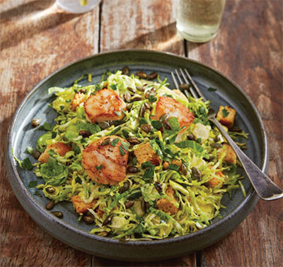 3. Squeeze the remaining lemon juice on them, then divide the salad between plates, top with scallops, parsley and pumpkin seeds.