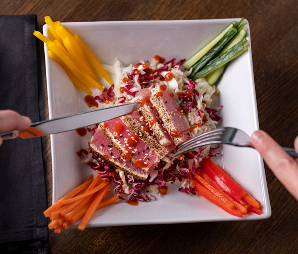 The flavors of Mediterranean-inspired dining made with local ingredients delighted us. The seasonal menu of nourishing dishes noted how many calories were in each plate from berry smoothie to blackened sea bass to red velvet cupcake. Good-for-you snacks, such as yogurt, cottage cheese, eggs, fresh fruit, veggies and almonds, were out all day. Variations based on dietary needs or preferences were freely accepted.