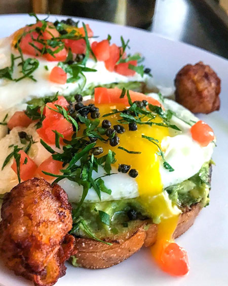 Our morning faves were eggs Benedict made with smoked salmon as well as a vanilla waffle with strawberry compote and whipped cream.
