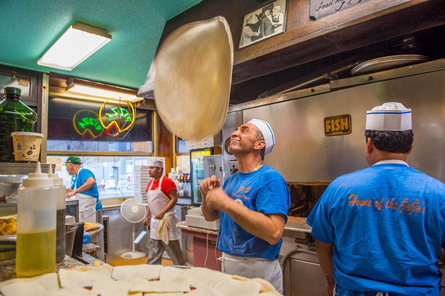 For street sustenance, we chomped not just hot dogs slathered with mustard and sauerkraut at the ubiquitous carts but a range of chow from chicken shawarma, lamb gyros and falafel to Chinese skewers and Indian plates. Plus, aromatic slices from neighborhood pizza shops rarely missed the mark.